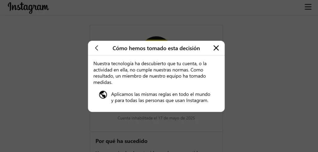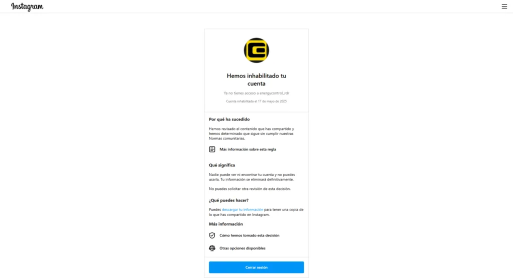 Desde el programa Energy Control de la Asociación Bienestar y Desarrollo (ABD) queremos informar que nuestra cuenta de Instagram ha sido cerrada de manera definitiva, a pesar de haber presentado las apelaciones oportunas. Este cierre no ha sido un hecho aislado, sino que se enmarca en una ola de eliminaciones de cuentas y contenidos gestionados por proyectos y organizaciones que trabajamos desde el enfoque de reducción de riesgos y daños asociados al consumo de sustancias psicoactivas.